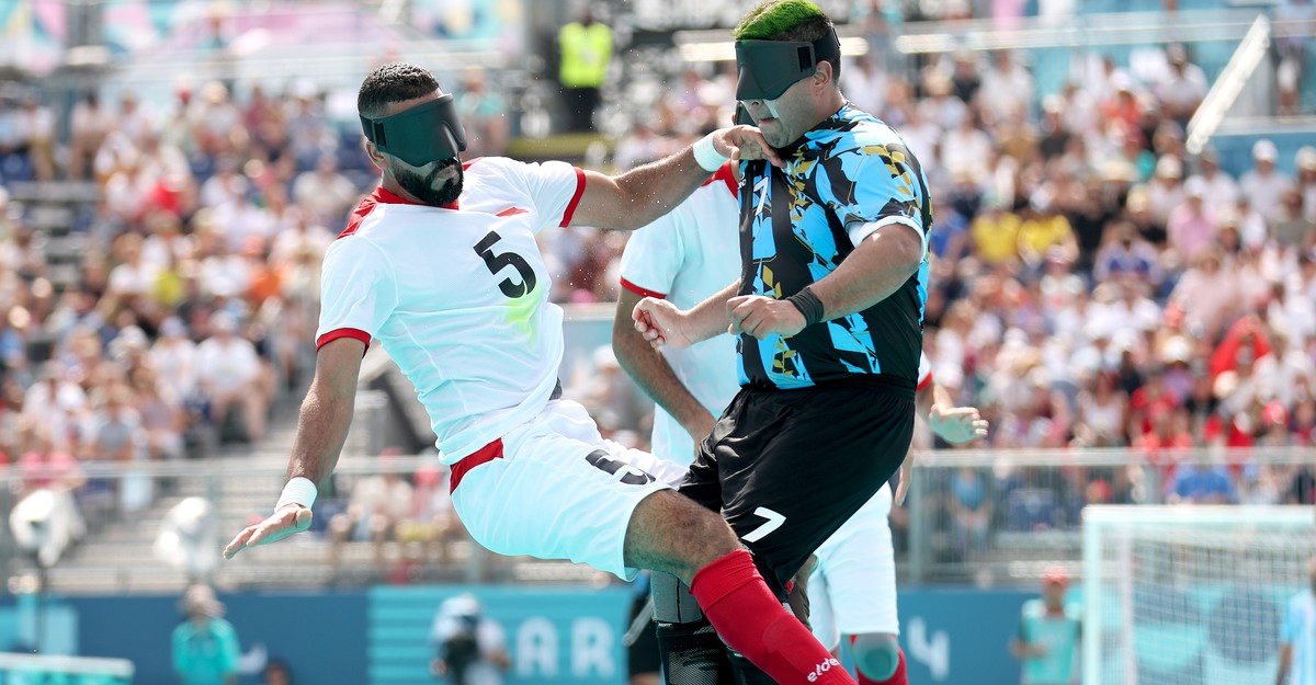 During a men’s preliminary group B blind football match at Paris 2024 Summer Paralympic Games, Moroccan player Hicham Lamlas collided with Argentina’s Maximiliano Espinillo. The sport, consisting of two teams with four vision-impaired outfield players and a sighted or partially sighted goalkeeper, requires players to track the ball by listening for its internal bell.